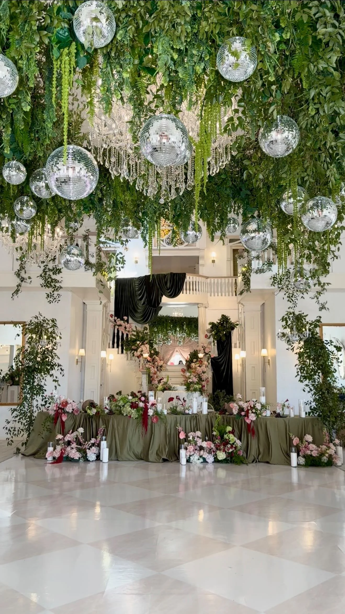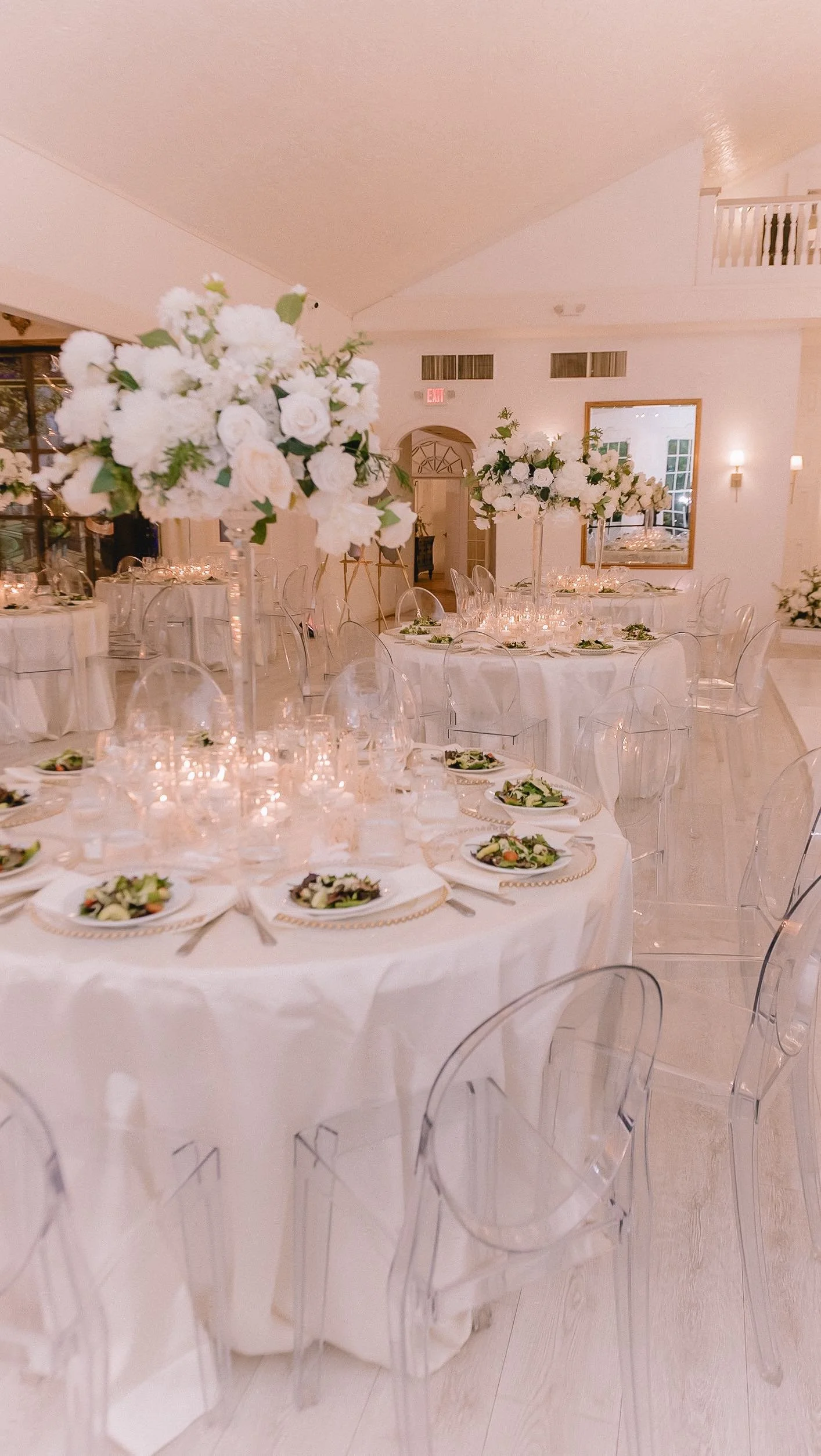Say “I do” beneath our century-old oak trees or inside our elegant chapel, featuring a cascading staircase, a sparkling crystal chandelier, and soaring 22-foot ceilings.