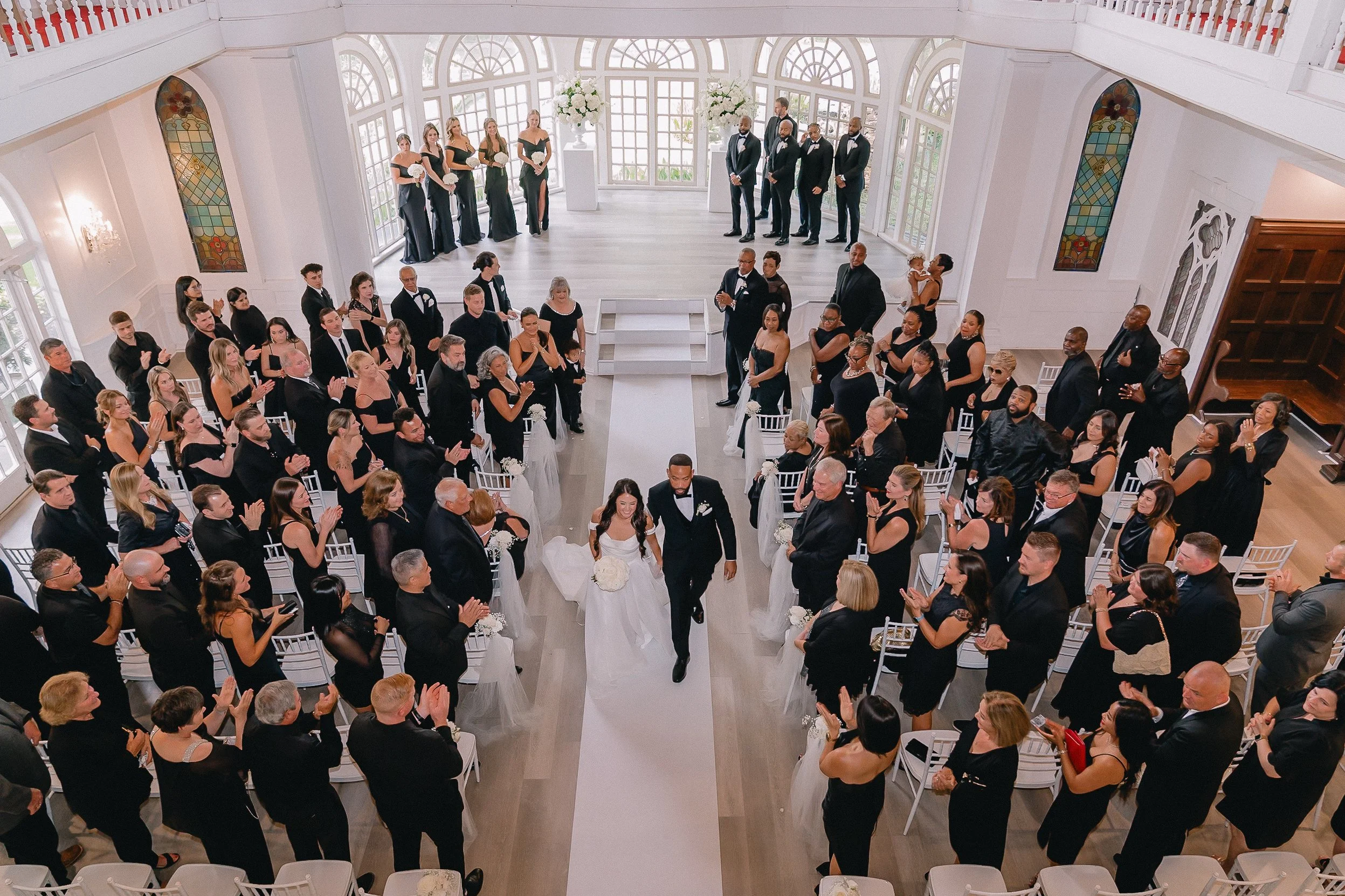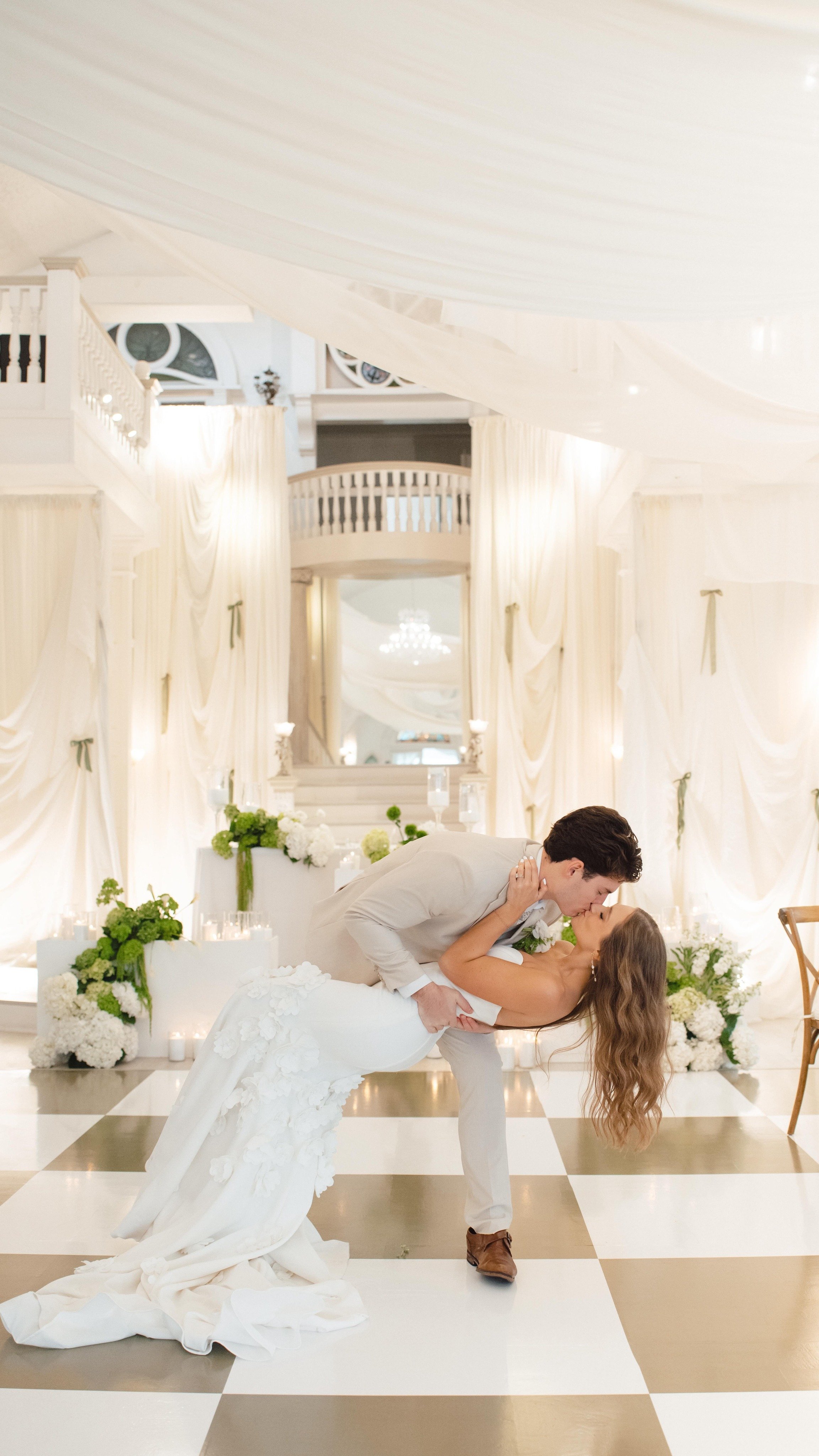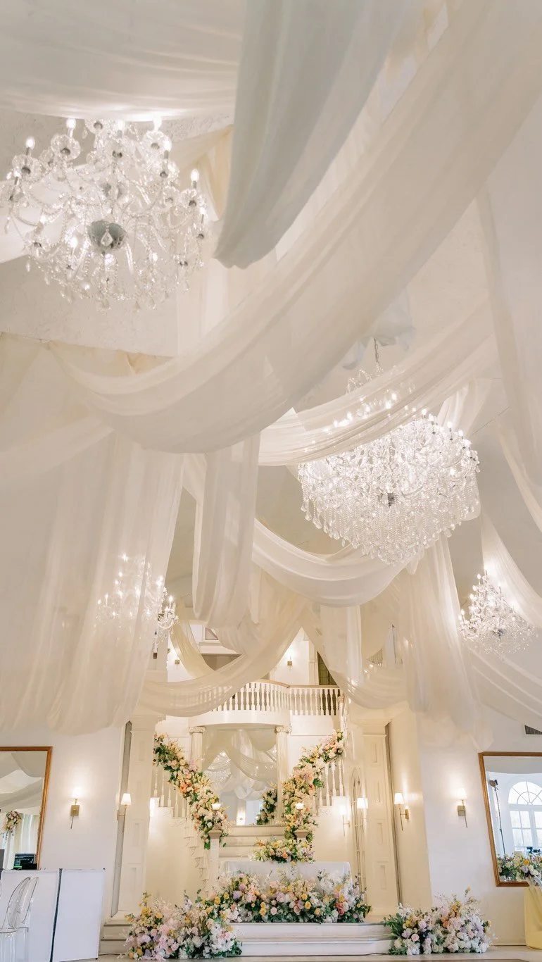 Say “I do” beneath our century-old oak trees or inside our elegant chapel, featuring a cascading staircase, a sparkling crystal chandelier, and soaring 22-foot ceilings.